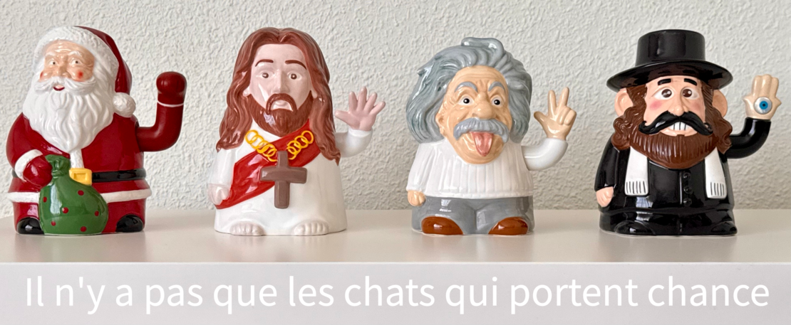 L'histoire de ces produits est très sympathique, un jour en me promenant dans le quartier chinois de Paris, je suis tombé sur une boutique qui vendez des figurines de toutes sortes et principalement le chat porte-bonheur , et c'est comme cela que j'ai eu l'idée de décliner ce produit sur des personnages intéressants, qui puisse eux aussi portaient bonheur à d'autres personnes.